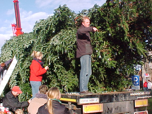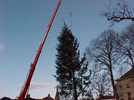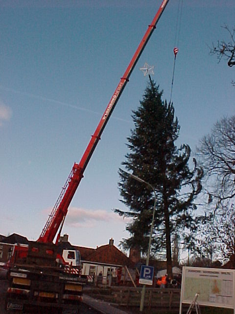 Dat ging jaren zo, totdat er een was die zei: ‘dat is geen boom, dat is een struik”. Dat kan veel beter, die boom van 3 of 4 meter is veel te klein. Hij werkte bij een plaatselijk tuincentrum en regelde een boom van 12 meter inclusief lampen. Dat zette nog een paar jongens aan het denken.